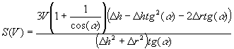 треугольника, характеризующего поперечное сечение формы рельефа, в 4 cos2(α)