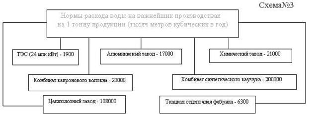 Чтобы постфактум не поражаться потерянным богатствам, необходим переход к управлению в границах системы "производство - водные ресурсы". Можно выделить два направления. Первое направление - переход к водосберегающей технологии и сокращение расхода водных ресурсов на единицу конечного продукта. Здесь очень большие резервы. По данным Минводхоза СССР, в 1985 году было потеряно 52 км кубических воды - целый годовой сток Днепра. Чрезмерные потери воды привели к негативным последствиям, борьба с которыми стоит очень дорого, - к подтоплению многих городов страны, к заболачиванию и засолению сельхозугодий. На нужды коммунального и питьевого водоснабжения в 1985 году забиралось 24,6 км кубических воды, из них пятая часть терялась. Расход дорогостоящей питьевой воды в 1980 году составлял в Минске 283 литра в сутки на одного жителя, в Таллинне - 428, Ленинграде - 456, Москве - 598 (по некоторым данным - 700 литров), в Ташкенте - 811, в городах Бухарской области - 1108 литров воды. Наведение элементарного порядка в расходовании водных ресурсов уже серьёзно продвинет вперёд решение проблемы.