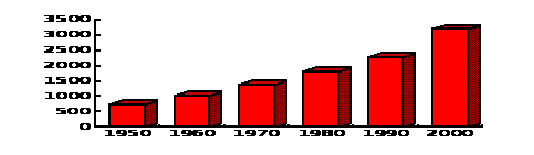 График роста численности городского населения ( млн. чел. ) 2). Концентрация населения и хозяйства в основном в больших городах, т.к. города имеют множество функций, особенно в непроизводственной сфере, они полнее удовлетворяют запросы людей, имеют развитую инфраструктуру и обеспечивают доступ к хранилищам информации. Половина населения мира живёт в городах. Более 30 городов мира имеют население более 5 млн. человек. 3). " Расползание " городов, расширение их территории. Это происходит тогда, когда вокруг крупных городов ( столиц, промышленных и портовых центров ) возникают пояса городов - спутников. Такие образования называются городскими агломерациями. Их неуправляемый рост очень беспокоит учёных, занимающихся этой проблемой. Крупнейшие городские агломерации сложились вокруг Мехико, Сан-Паулу, Токио и Нью-Йорка. Условные уровни урбанизации : Ё Низкий уровень урбанизации - менее 20% ; Ё Средний уровень урбанизации - от 20% до 50% ; Ё Высокий уровень урбанизации - от 50% до 72% ; Ё Очень высокий уровень урбанизации - свыше 72% . Слабоурбанизированные страны - Западная и Восточная Африка,Мадагаскар и некоторые страны Азии. Среднеурбанизированные страны - Боливия, Африка, Азия. Высокоурбанизированные страны - СНГ, Европа, Северная Америка, ЮАР, Австралия, Южная Америка. Темпы урбанизации зависят от уровня эконоического развития страны. В большинстве экономически развитых странах, где урбанизация достигла достаточно высокого уровня, процесс взят под контроль, и доля городского населения не увели-чивается, а даже немного уменьшается. Но урбанизация продолжает расти вглубь, приобретая новые формы. В развивающихся странах урбанизация продолжает расти вширь, а городское население быстро увеличивается. Это явление получило название городского взрыва ипродолжает оставаться неконтролируемым. Однако рост населения городов в этихрегионах намного опережает их реальное развитие. В ряде международных документов ( в частности, в резолюции Международного банка Реконструкции и Развития ) говорится о кризисе урбанизации в развивающихся странах. Но она продолжает оставаться в основном стихийной и неупорядоченной. Для стабилизаци процесса урбанизации необходимо, чтобы происхолил частич-ный отток населения из города в сельские районы, что приведёт к разгрузке городов и увеличению товарооборота между деревней и городом. Вероятно, Вы знаете о так называемой " проблеме больших городов ", которые занимают значительную площадь земли. В качестве одного из путей решения этой проблемы строятся и проектируются сверхвысокие здания. Выдвигаются также полуфантастические проекты сооружения подземных городов, плавучих городов, подводных городов, городов-конусов, городов-деревьев, городов-башен, городов-воронок, городов-мостов и т. д. Другой метод разгрузки крупных городов предлагают аргентинские учёные. Ещё недавно широко обсуждался проект переноса столицы Аргентины из Буэнос-Айреса во Вьедму. В пользу этого приводились несколько факторов. Во-первых, будет разгружен Буэнос-Айрес, т. к. в трёхмиллионной агломерации Большого Буэнос-Айреса сосредоточена почти 1 / 10 часть всего населения страны; это не только административная, но и промышленная столица страны, а также крупнейший порт. Во-вторых, развитие нового центра способствовало бы освоению Патагонии,а как сле