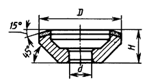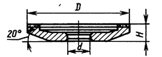 Круги с большой концентрацией алмазов характеризуются большей производительностью. Поэтому высокая концентрация алмазов целесообразна при жестких режимах, при шлифовании периферией круга и при необходимости избегать деформации круга. Например, для профильного шлифования и при внутреннем шлифовании оптимальной концентрацией является 100-процентная. Для большинства работ применяются круги 50-процентной концентрации. Круги пониженной концентрации (25%) используются на операциях доводки вручную. Алмазные круги изготовляются не только на различных связках и с различной степенью концентрации алмазов, но и различными по форме и зернистости. ГОСТ 24747-81 предусмотрено 68 типоразмеров кругов. В табл. 3 представлены формы и основные размеры кругов. Каждый тип круга имеет буквенный индекс, который состоит из двух частей. Например, в круге АПП буква А обозначает круг алмазный, а ПП — плоский прямой. ( Обозначение дано по ГОСТ 24747-81, в скобках дано старое обозначение кругов) Таблица 3 Круги шлифовальные алмазные