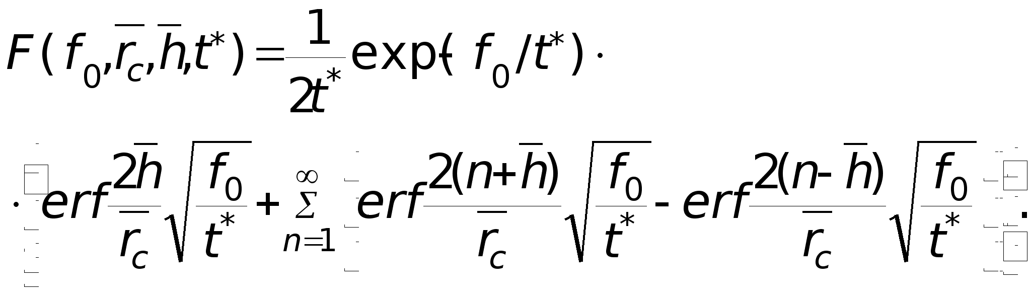 Тюменский Государственный Нефтегазовый Университет Кафедра РЭНиГМ Реферат«Анализ функции фильтрационного сопротивления для неустановившегося притока жидкости (газа) к несовершенной скважине» Выполнил студентГруппы НГР-96-1 Принял профессор Телков А. П. Тюмень 1999 г. Рассмотрим функция (F) которая есть функция пяти параметров F=F (f0, rc, h, , t*), каждый из которых — безразмерная величина, соответственно равная