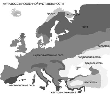 Рис. 7. Карта восстановленной растительности Европы Список литературы Jonathan Adams. Europe during the last 150 000 years. на /nercEUROPE.html. Динесман Л.Г. Голоценовая история биогеоценозов Русской равнины в позднем антропогене // История биогеоценозов СССР в голоцене. – М.: 1976, с. 122–132. Природные ландшафты голоцена и их изменение под влиянием деятельности человека // История биогеоценозов СССР в голоцене. – М.: 1976, с. 132–146. |