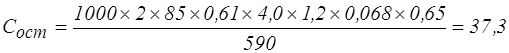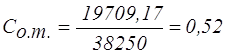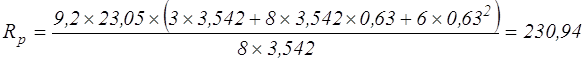 где b – длина секции крепи по перекрытию, м; b=3,542[таб. 10]; l – шаг посадки непосредственной кровли, равен шагу передвижки секции, м; l=0,63 [таб. 10]
