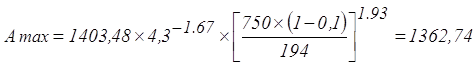 Pуст - устойчивая мощность двигателей выемочной машины, кВт; Pуст=200 [таблица №8]; Нw - удельные энергозатраты выемки угля, кВт´ч/т; Нw=1,0 [5,рис.11].