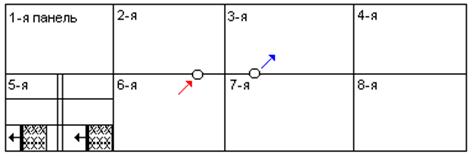 Рисунок 3 – Погоризонтная схема подготовки шахтного поля Погоризонтный способ подготовки шахтного поля является на данный момент наиболее прогрессивным и практически не имеет недостатков. Он рекомендован для всех строящихся шахт и шахт, находящихся на реконструкции. Комбинированный способ в основном применяется на старых действующих шахтах, когда давно разрабатываемые пласты отрабатываются одним способом, а новые – другим. Также может применяться на шахтах, разрабатывающих пласты с переменным углом падения и большой мощностью междупластья, т. е. при значительной протяженности группирующих выработок. Их применение преследует своей целью повышение концентрации горных работ, улучшения проветривания и отвода воды, сокращения объема проветриваемых выработок и уменьшение затрат на транспортирование угля. Так как угол падения пласта составляет a=16 градусов, то для отработки пласта К5' буду использовать панельный способ отработки шахтного поля. Схему отработки смотри в графической части. 2.4 Выбор системы разработкиСистема разработки – определенный, увязанный в пространстве и времени порядок ведения очистных и подготовительных работ в пределах участка шахтного поля. Таким участком может являться выемочная ступень, панель или этаж. Основные факторы, влияющие на выбор системы разработки: элементы, форма залегания и строение угольных пластов; свойства угля и вмещающих пород; газоносность и водоносность месторождения; склонность пластов к внезапным выбросам угля и газа, горным ударам; склонность угля к самовозгоранию; расстояние между разрабатываемыми пластами; глубина разработки; способы и средства механизации производственных процессов в очистных и подготовительных забоях. Элементы залегания пластов сохраняются на значительных площадях или могут изменяться в пределах одного шахтного поля. Поэтому при составлении программы развития горных работ на шахте предусматривают возможность перехода от одной системы к другой. Переход должен быть произведен с минимальными затратами средств и времени на базе существующего способа подготовки шахтного поля. На шахтах Донбасса применяются следующие системы разработки: 1. сплошная; 2. столбовая; 3. комбинированная. Сплошная система разработки предполагает одновременное ведение очистных и подготовительных работ в выемочном поле или этаже. При этом очистной забой и забои откаточного (конвейерного) и вентиляционного штреков, оконтуривающих выемочное поле или этаж движутся в одном направлении. Схему сплошной системы разработки смотри на рисунке №4.
