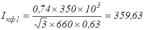 Так как на участке раздельное включение кабелей, питающих две отдельных СУВ-350, сечение силовой жилы каждого из них определяю из условия Iс.н.≥Iкф, причем значения коэффициента спроса рассчитываю для каждой группы потребителей по формуле