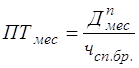 Принимаю явочную численность суточной комплексной бригады чяв.бр.=47 человек. 5.3.2 Расчет списочной численности суточной комплексной бригадыСписочную численность суточной комплексной бригады, человек, нахожу по формуле чсп.бр.=чяв.бр.´kсп, где kсп – коэффициент списочного состава; принимаем kсп=1,9 чсп.бр.=47´1,9 =89,3 Принимаю списочную численность суточной комплексной бригады чсп.бр.=89 человек. 5.3.3 Расчет численности машинистов подземных установок (МПУ)Принимаю в каждую добычную смену по одному машинисту подземных установок третьего разряда для обслуживания погрузочного пункта. Итого: чяв.МПУ=3 чсп.МПУ=3´1,9=5,7 Списочную численность МПУ принимаю, человек чсп.МПУ=5 5.4 Составление графика выходов рабочих на суткиНа основании произведенных расчетов численности рабочих очистного забоя составляю график выходов рабочих [смотри графическую часть]. Все полученные данные свожу в таблицу 19. 5.5 Расчет производительности трудаРасчет производительности труда на выход и на месяц в тоннах произвожу по формулам