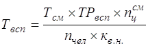 где ТРвсп – трудоемкость любого вспомогательного процесса в человеко-сменах [данные таб. 18] пчел – количество человек, выполняющих данный технологический процесс Продолжительность сокращения конвейера