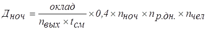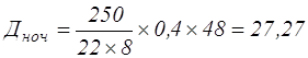 где tсм – продолжительность смены, час; tсм=8 nвых – число выходов за месяц, nвых=22 48 – количество часов в ночное время, оплачиваемое по приказу за месяц