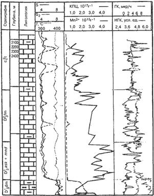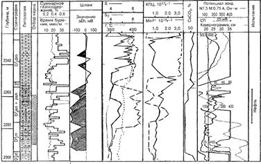 Статья: Методы оперативного изучения геологического разреза нефтегазовых скважинСтатья: Методы оперативного изучения геологического разреза нефтегазовых скважинП.П. Муравьёв, С.Н. Сидорович Отбор и оперативное изучение бурового шлама и керна – важная и неотъемлемая часть геолого-технологических исследований. Применяемый в настоящее время комплекс исследований каменного материала, включающий макро- и микроописание пород, карбонатометрию, люминесцентно-битуминологический анализ, а также определение плотности и пористости пород не всегда даёт полную геологическую характеристику разбуриваемого разреза скважин, особенно при исследовании сложнопостроенных карбонатных разрезов. Во ВНИИнефтепромгеофизике были проведены опытно-методические работы по оценке информативности новых методов исследования шлама и керна: электронного парамагнитного резонанса (ЭПР), термодесорбции и пиролиза (ТДП), и окислительно-восстановительного потенциала (ОВП) [5]. Метод электронного парамагнитного резонанса (ЭПР) основан на поглощении сверхвысокочастотной энергии переменного поля парамагнитным веществом, находящимся в сильном постоянном магнитном поле. Все горные породы, битумы и нефть в различной степени обладают парамагнетизмом. Форма ЭПР-спектра различна для каждого литотипа горных пород и нефтей отдельных пластов. Как показали результаты проведённых опытно-методических работ, метод ЭПР позволяет решать следующие задачи: выделять опорные пласты в карбонатных разрезах и проводить корреляцию разрезов скважин по характеру ЭПР-спектра; идентифицировать литотипы пород; выделять нефтебитумосодержащие пласты в разрезе скважины; определять принадлежность нефти к пластовой или добавляемой в промывочную жидкость [3]. Выделение опорных пластов методом ЭПР основано на зависимости между величиной концентрации ионов двухвалентного марганца в карбонатных породах и условиями седиментогенеза. Присутствие ионов двухвалентного марганца в породе свидетельствует о наличии глубоководных фаций, образованных в условиях явного недостатка кислорода [2]. По концентрации Мn2+, измеренной методом ЭПР, можно судить об условиях осадконакопления, а по аномальным значениям этой концентрации выделять опорные пласты в разрезах скважин. На рис.1 показан пример выделения опорных пластов методом ЭПР-спектроскопии по скв.83, 93, 99 Южно-Сергеевского месторождения (Башкортостан). Измерения проводились главным образом на пробах бурового шлама, которые отбирались в процессе бурения через 1 - 3 м проходки. Масса анализируемой навески составляла 0,2 г измельчённой породы. Время анализа - 5 мин. Всего по трём скважинам было проанализировано свыше 400 образцов. По аномально-высокой концентрации Мn2+ в разрезах скважин чётко выделяется аскинско-мендымский горизонт, причём наиболее высокие значения концентраций Мn2+ по всем скважинам отмечаются в кровле и подошве горизонта.