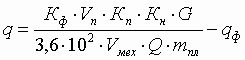 Очевидно, что при наиболее неблагоприятных условиях вскрытия маломощных продуктивных пластов особые требования должны предъявляться к чувствительности газоаналитической аппаратуры (суммарный газоанализатор и хроматограф) и длительности цикла анализа хроматографа. Для обоснованного выбора необходимой чувствительности хроматографа сделан количественный расчет поступающего из разбуренного нефтенасыщенного пласта мощностью 2 м углеводородного газа при газовом факторе нефти 12 м3/т, пористости 20 %, диаметре скважины 215,9 мм, механической скорости бурения 1 м/ч и расходе промывочной жидкости 40 л/с. Газонасыщенность промывочной жидкости (q) при разбуривании продуктивного пласта определяется по формуле