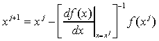 Теперь предположим, что справедливо необязательное допущение того, что предыдущее приближение xj было удовлетворительным, так что xj+1 - xj мало. Если это предположение верно, мы можем пренебречь членами более высокого порядка в уравнении (3), так как n-я степень малой величины значительно меньше, чем малая величина для n>=2. В этом случае уравнение (3) может быть аппроксимировано следующим образом: