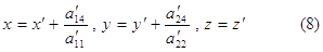 Подставляя х', у' и z', найденные из (8), в левую часть (7) и заменяя затем a´11 на a11 , а´22 на а22 , а´34 на p и а´44 на q , получим следующее уравнение поверхности S в новой системе координат Oxyz : a11х2 + а22у2 + 2pz + q = 0 (9)