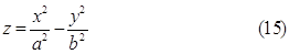 Уравнение (14) легко получается из (13). Если a11 и а22 имеют разные знаки, то параболоид называется гиперболическим. Каноническое уравнение гиперболического параболоида имеет вид