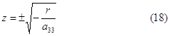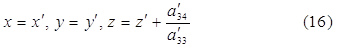 Подставляя х', у' и z' , найденные из (16) в левую часть (7) и заменяя затем a´33 на a33 , a´14 на р , a´24 на q и a´44 на r , получим следующее уравнение поверхности S в новой системе координат Охуz : a33 z2 + 2px + 2qy + r = 0 (17)