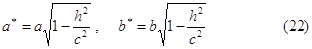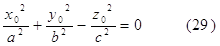 Обозначим эти числа соответственно через a2, b2, с2. Поcли несложных преобразований уравнение (2) двуполостного гиперболоида можно записать в следующей форме: