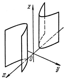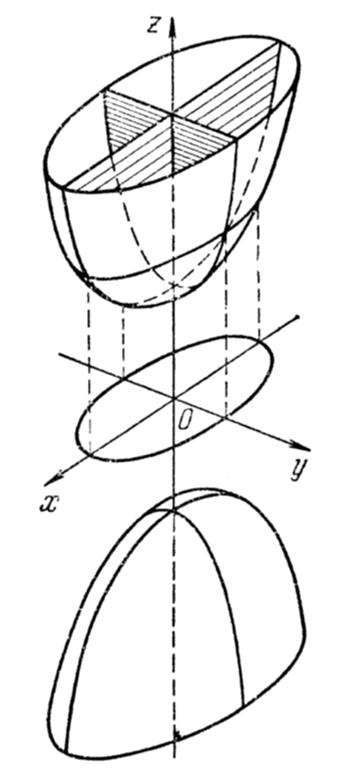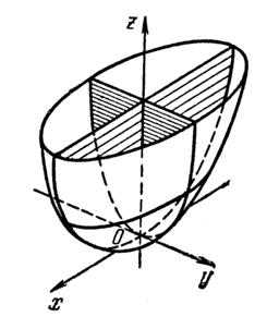 мы видим, что для него Oxz и Оуz являются плоскостями симметрии. Ось Oz, представляющая линию пересечения этих плоскостей, называется осью эллиптического параболоида.