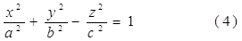 положительны. Обозначим эти числа соответственно а2, b2, с2. После несложных преобразований уравнение (2) однополостного гиперболоида можно записать в следующей форме: