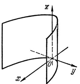 Состоит из прямых линий, параллельных оси Oz . 4. Параболический цилиндр. a33 z2 + 2q´y = 0 (19) Путем переименования осей координат и простых арифметических операций из уравнения, (19) мы получим новое, компактное уравнение параболического цилиндра.