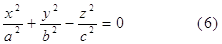 Уравнение (5) называется каноническим уравнением двуполостного гиперболоида. Если двуполостный гиперболоид задан своим каноническим уравнением, то оси Ох, Оу и Оz называются его главными осями. 4. Коэффициент а44 равен нулю. В этом случае поверхность S называется конусом второго порядка. Если коэффициенты a11 , а22 , a33 одного знака, то левая часть (2) обращается в нуль (а44 = 0) лишь для х=у=z=0, т. е. уравнению поверхности S удовлетворяют координаты только едной точки. В этом случае поверхность S называется мнимым конусом второго порядка. Если коэффициенты a11 , а22 , a33 имеют разные знаки, то поверхность S является вещественным конусом второго порядка. Обычно уравнение вещественного конуса второго порядка записывают в канонической форме. Пусть, ради определенности, a11 > o, а22 > 0, a33 < 0. Обозначим