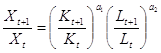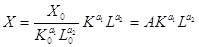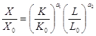 те X0, K0 L0 — значения выпуска и затрат фондов и труда в базовый год. Безразмерная форма , указанная выше , легко приводится к первоначальному виду