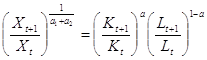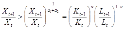 а1+ а2 > 1 выпуск растет быстрее, чем в среднем растут