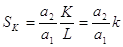 Таким образом, коэффициент получает естественную интерпретацию - это коэффициент, который соизмеряет ресурсы с выпуском. Если обозначить выпуск и ресурсы в относительных (безразмерных) единицах измерения через x, k, l, то ПФ в форме