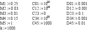 a11 a12 0 0 0 a21 a22 a23 0 0 D= 0 a32 a33 a34 0 (5) 0 0 a43 a44 a45 0 0 0 a54 a55 где a11 = J1Чs2+(D01+D12)Чs+C01+C12 a12 = -D12Чs-C12 a21 = a12 a22 = J2Чs2+(D12+D23)Чs+C12 a23 = -D23Чs a32 = a23 a33 = J3Чs2+(D23+D34)Чs+C34 a34 = -D34Чs-C34 a43 = a34 a44 = J4Чs2+(D34+D45)Чs+C34+C45 a45 = -D45Чs-C45 a54 = a45 a55 = J5Чs2+D45Чs+C45