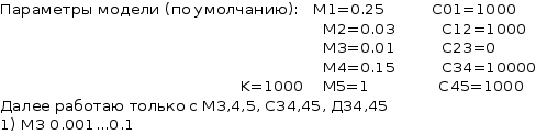Из Табл.12...14 видно, что моменты инерции каждого из элементов модели сильно влияют только на одну из постоянных времени мало изменяя другие, поэтому в практических расчетах их можно считать независимыми. 2) Влияние нежесткостей редуктора С34 и крепления телекамеры к платформе С45. а) Варьируем C34 (нежесткость редуктора): Табл.15.