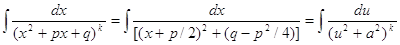 Правила интегрирования рациональных дробей: