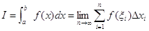10. Определенный интеграл: 1) интервал [a,b], в котором задана функция f(x), разбивается на n частичных интервалов при помощи точек a=x0<x1<…<xn–1<xn=b; 2) Значение функции f(xI) в какой нибудь точке xiÎ[xi–xi–1] умножается на длину этого интервала xi–xi–1, т.е. составляется произведение f(xi)(xi–xi–1); 3)