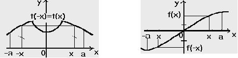Реферат: Методы обучения математике в 10 -11 класахРеферат: Методы обучения математике в 10 -11 класахРОЗДІЛ 2 Використання методів навчання при вивченні деяких змістових ліній курсу алгебри і початків аналізу. „Елементарні функції”, “Похідна та її застосування” §1. ПОЯСНЮВАЛЬНО-ІЛЮСТРАТИВНИЙ МЕТОД Пояснювально-ілюстративний метод можна використовувати на будь-якому уроці, а не лише при поясненні нового, складного матеріалу. Цей метод сприяє розвитку просторового уявлення і через наочність покращує розуміння матеріалу. Розглянемо застосування методу при вивченні понять “Парні та непарні функції”. Розглянемо функції, область визначення яких симетрична відносно початку координат.