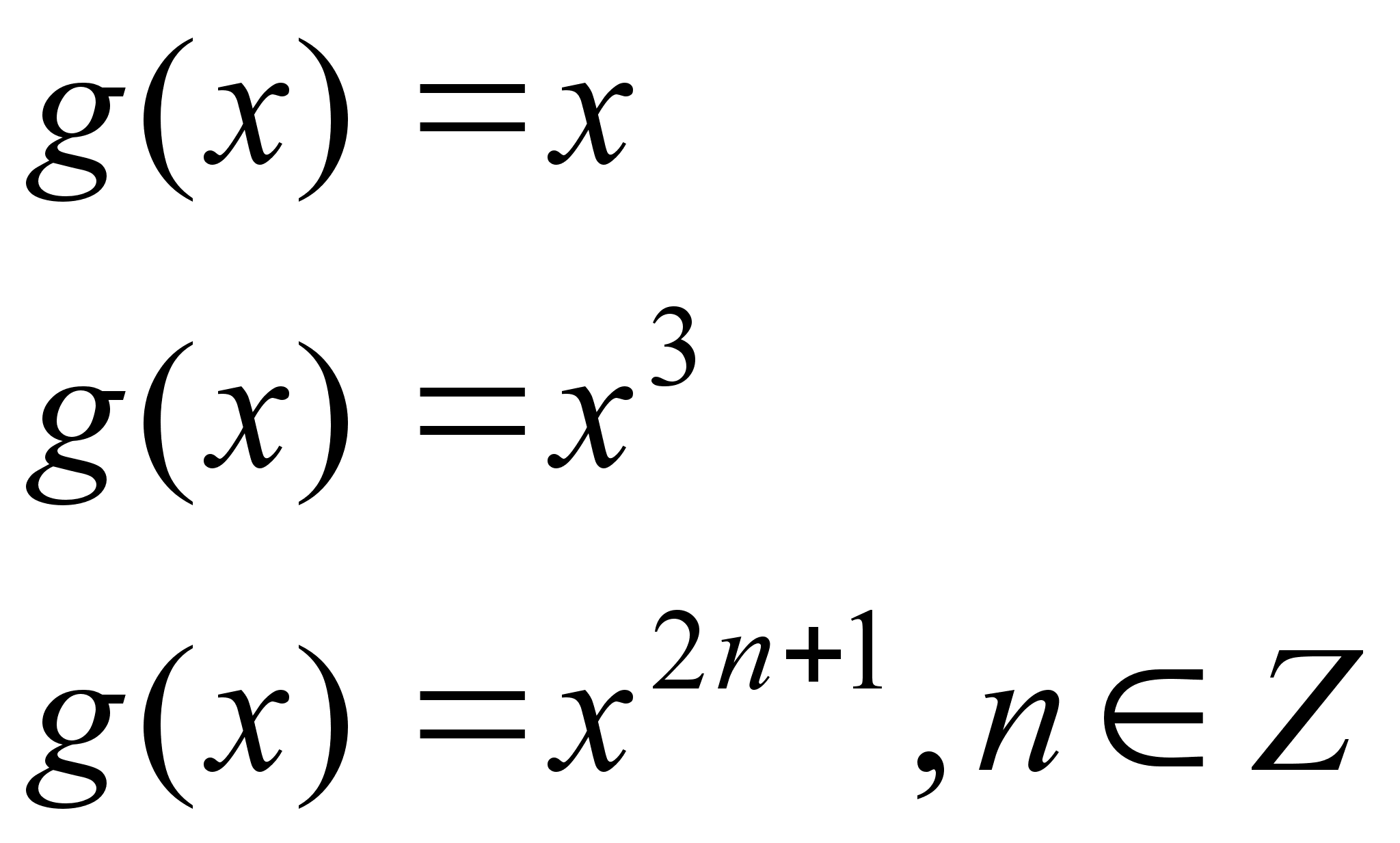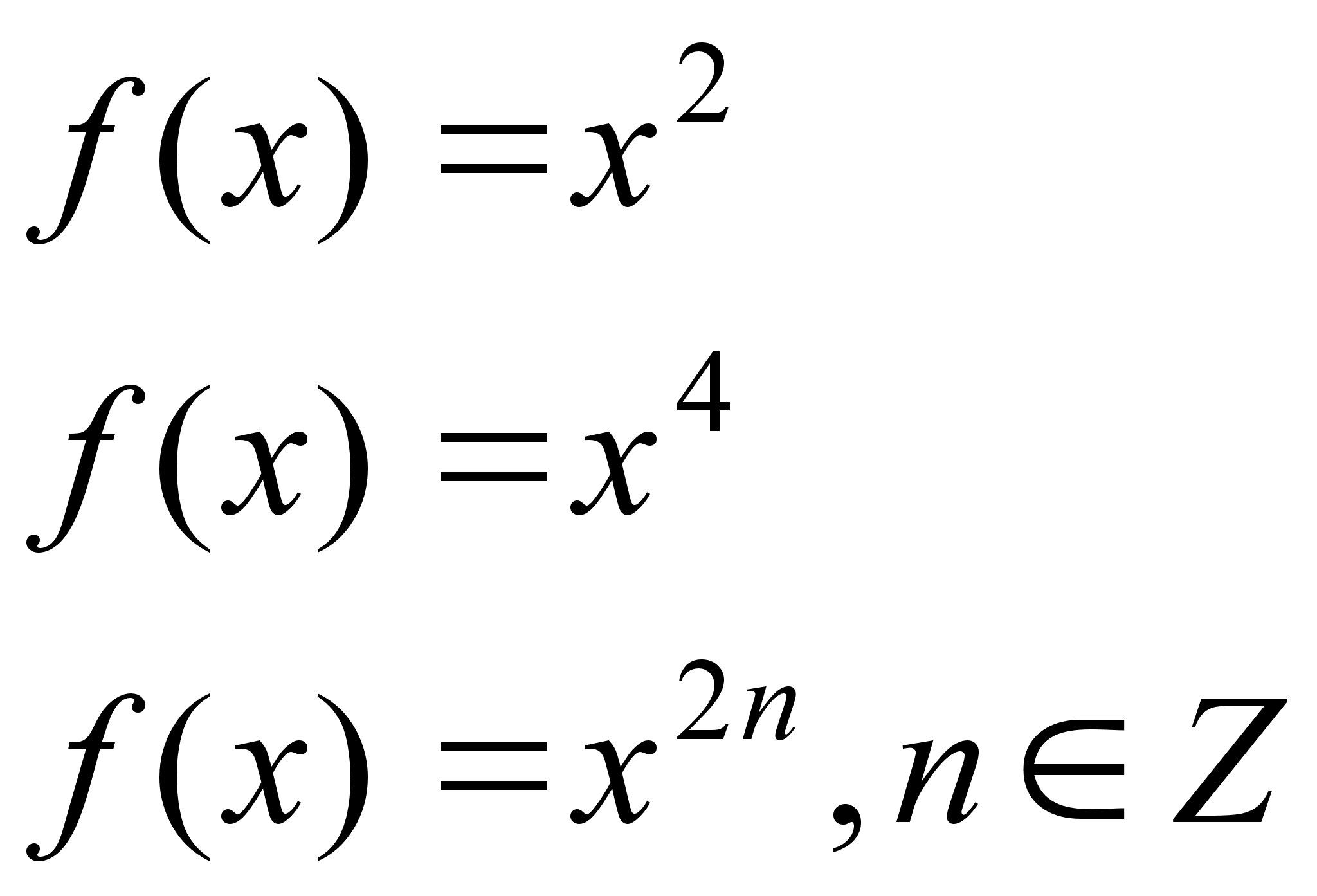 Дійсно, область визначення кожної з них симетрична відносно початку координат, та виконуються рівності: f(-x) = f(-x)2n = f(x)2n = f(x) – парність, та для g(-x)=g(-x)2n+1= –g(x)2n+1= –g(x) – непарність.