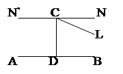 Постулат Евклида утверждает, что из всех прямых плоскости АВС, проходящих через т. С, только одна прямая NN’ не встречает прямой АВ. Отказываясь от этой аксиомы, Лобачевский допускает, что через т. С проходит по крайней мере еще одна прямая CL не пересекающая АВ.