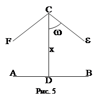 Несмотря на коренные отличия, понятия параллельности у Лобачевского от одновременного понятия в геометрии Евклида, можно доказать, что «параллельность» в смысле Лобачевского тоже обладает свойствами взаимности или симметрии (если прямая а параллельна прямой в, то в параллельна а). И транзитивности (если а и в параллельны с, то а и в параллельны между собой). Приведем некоторые другие понятия и факты геометрии Лобачевского: 1. Функция Лобачевского. Как уже говорилось выше, через т. С в плоскости САВ проходят 2 направленные параллели к прямой АВ (СЕ и CF), симметрично расположенные относительно перпендикуляра CD (рис.5). Угол параллельности, образованный каждой из этих параллелей с CD, является острым, его величина не постоянна и зависит от расстояния CD(в геометрии Евклида угол параллельности всегда прямой). То, что угол параллельности острый, вытекает непосредственно из аксиомы Лобачевского. В изменении этого угла с изменением расстояния CD можно убедиться путем следующих рассуждений (рис.6).