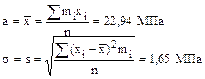 Полученный результат означает, что если будет произведено достаточно большое число выборок по 250 исследований прочности образцов бетона на сжатие, то в 95% из них доверительный интервал накроет среднее квадратическое отклонение σ и только в 5% среднее квадратическое отклонение σ можёт выйти за границы доверительного интервала. |