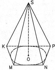 SKMNP – пирамида, описанная около конуса. Пирамида усечённая - пирамида, которая получается следующим способом: берется произвольная пирамида, и через точку бокового ребра проводится плоскость, параллельная основанию пирамиды. Данная плоскость разделила пирамиду на две фигуры: подобную исходной пирамиду и многогранник, который называется усеченной пирамидой. Основаниями усеченной пирамиды служат подобные многоугольники. Если усеченная пирамида получается из правильной пирамиды, то она называется правильной усеченной пирамидой. Боковые грани правильной усеченной пирамиды являются равными равнобедренными трапециями. Высота боковой грани называется апофемой правильной усеченной пирамиды. Перпендикуляр, опущенный из точки верхнего основания на нижнее, называется высотой усеченной пирамиды. Площадь полной поверхности усеченной пирамиды равна сумме площадей оснований и боковых граней.