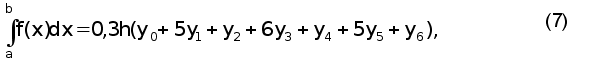 и Далее по построенному статистическому ряду значений R рассчитывается приближенное значение статистического среднего (математического ожидания) m*. Минимальное число испытаний определяется по формуле Nmin=lg(1-)/lg(1-), (6) где – заданная вероятность попадания при испытаниях в зону, ограниченную заданной точностью; – заданная точность. Вычисление определенного интеграла производится численным методом по приближенной формуле Уэддля для шести значений подынтегральной функции: г б Последовательность решения задачи 4