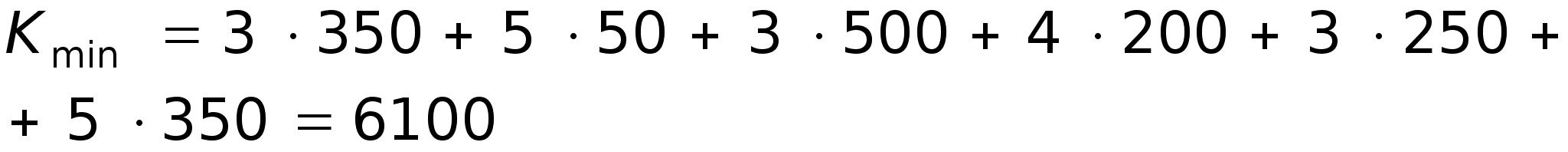 Требуется определить такие значения xij (выбрать такой план) удовлетворяющий выражениям (21) и (31), которые критерий эффективности обращают в минимум. Так формулируется задача линейного программирования для данных условий. Эта задача решается элементарными подсчетами и рассуждениями. Отметим в столбцах звездочками минимальные значения стоимости перевозки одной тонны ГСМ. В каждое соединение нужно планировать доставку из того склада, для которого эта стоимость будет наименьшей или близкой к ней, но с учетом расходов на доставку ГСМ и в другие соединения. Очевидно, в 1-е и 4-е соединение целесообразно завозить ГСМ полностью из 1-го склада, поэтому целесообразно выбрать x11=350, x14=500. Во второе соединение выгодно доставить горючее целиком с 3-го склада. Но тогда будут большие расходы при доставке ГСМ в 3-е соединение из 2-го склада. Поэтому целесообразно выбрать x13=50, x33=350, т.е. завести горючее в 3-е соединение с 1-го и 3-го складов, а 200 т. для 2-го соединения завести из склада, x22=200, x32=250. Результаты расчетов занесены в таблице 2, по которой удобно проверить выполнение условий (21), (31), найдя суммы xij по строкам и столбцам. При таком плане расходы будут минимальными: