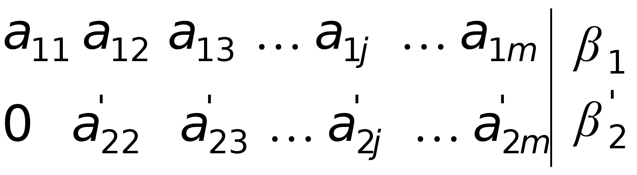 коэффициенты от неизвестных свободных членов отделим чертой, а элемент a11, заключенный в рамочку, будем называть разрешающим элементом. Выпишем соответствующую таблицу для коэффициентов уравнений (3.26)
