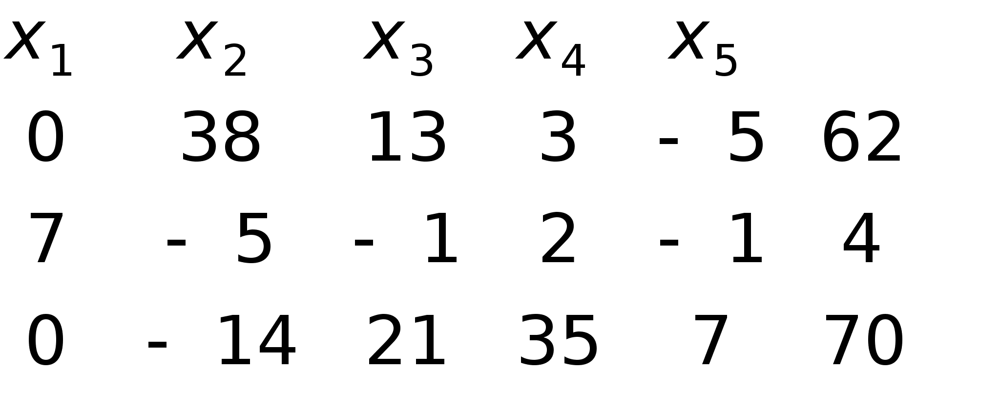 Этой таблице соответствует система уравнений, разрешенная относительно базисной переменной x1. Так как обе части любого уравнения системы можно умножать и делить на любое постоянное число (система при этом будет эквивалентна прежней), то если строки таблицы имеют общий множитель, на него можно сократить. Последняя строка предыдущей таблицы имеет общий множитель 7; сокращая на него, получим таблицу