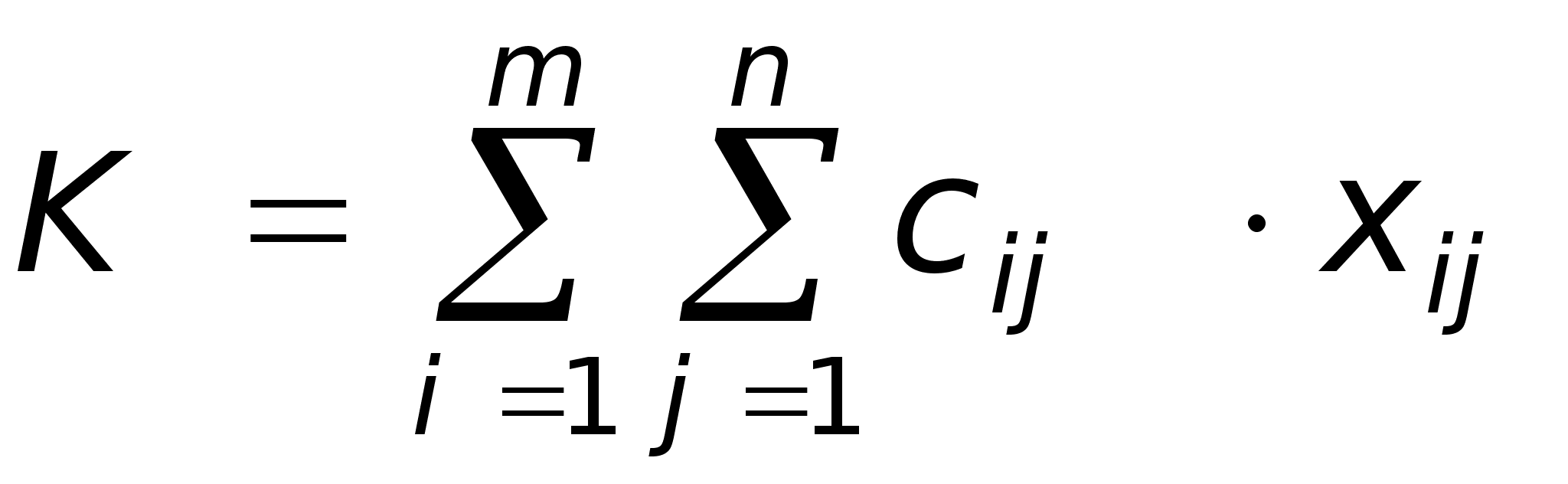 Последнее выражение означает, что запасов на складах достаточно для снабжения всех потребителей. Суммарная стоимость перевозок для любого выбранного плана (1) определяется выражением: