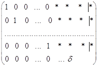 где в последней строке ведущий элемент обозначен через d. Для ненулевого числа d возможны два случая: (а) d находится до черты, т.е. лежит в основной матрице. Следовательно, в этом случае мы можем написать общее решение совместной системы. Заметим, что все переменные будут связаны Û ранг основной матрицы равен числу переменных системы. (б) d находится после черты; тогда система несовместна и ранг основной матрицы меньше ранга расширенной матрицы на единицу. Тем самым, мы доказали теорему. Теорема. Пусть d - ведущий элемент последней строки приведенной ступенчатой матрицы. Тогда (а) система совместна Û d находится до черты; (б) система несовместна Û d находится после черты; (в) система является определенной Û d находится до черты и все переменные связанные; (г) система является неопределенной Û d находится до черты и имеется хотя бы одна свободная переменная. 20. Критерии совместности и определенности. Из приведенной теоремы немедленно вытекают следующие два критерия. Критерий совместности (теорема Кронеккера-Капелли). Система Ax = b линейных уравнений является совместной Û ранг основной матрицы равен рангу расширенной матрицы, т.е. r(A) = r(A½b). Критерий определенности. Система Ax = b линейных уравнений от n переменных является определенной Û ранг основной матрицы равен рангу расширенной матрицы и равен числу переменных в системе, т.е. r(A) = r(A½b) = n. 30. Связь между решениями совместной неоднородной и связанной с ней однородной системами линейных уравнений. Допустим, что дана совместная система линейных уравнений: