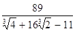 Раскрывая скобки и используя равенство c3 = 2, получаем: 89 = (32x + 2y - 11z) + (2x - 11y + 16z)c + (-11x + 16y + z)c2. Так как числа 1, c, c2 линейно независимы над Q имеем 32x + 2y - 11z = 89, 2x - 11y + 16z = 0, -11x + 16y + z = 0. Решением