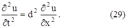Сокращая на ∆х и обозначая a2 = T/ ρ, получаем уравнение движения