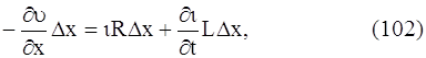 Это падение напряжения складывается из омического, равного ίR∆x, и индуктивного , равного (∂ ί /∂ t )L∆x. Итак,