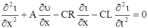 где R и L - сопротивление и коэффициент самоиндукции, рассчитанный на единицу длины провода. Знак минус взят потому, что ток течет в направлении, обратном возрастанию υ. Сокращая на ∆х, получаем уравнение