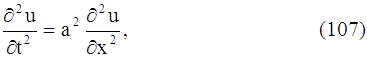 К исследованию этого уравнения приводит рассмотрение процессов поперечных колебаний струны, продольных колебаний стержня, электрических колебаний в проводе, крутильных колебаний вала, колебаний газа и т. д. Это уравнение является простейшим уравнением гиперболического типа. 2. Уравнение теплопроводности или уравнение Фурье: