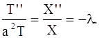 В левой части этого равенства стоит функция, которая не зависит от х, слева – функция, не зависящая от t. Равенство (113) возможно только в том случае, когда левая и правая части не зависят ни от х, ни от t, т. е. равны постоянному числу. Обозначим его через – λ, где λ > 0 ( позднее будет рассмотрен случай λ < 0). Итак,