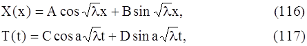 где A, B, C, D – произвольные постоянные. Подставляя выражения X(x) и T(t) в равенство (112), получим: